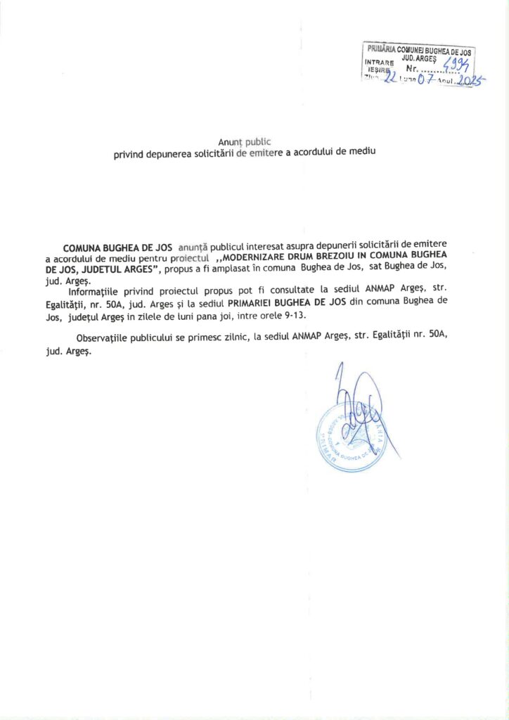 Administratie Primaria Bughea de Jos, ANUNT de interes public De ziarulag - July 23, 2025 0 215 Share on Facebook Tweet on Twitter