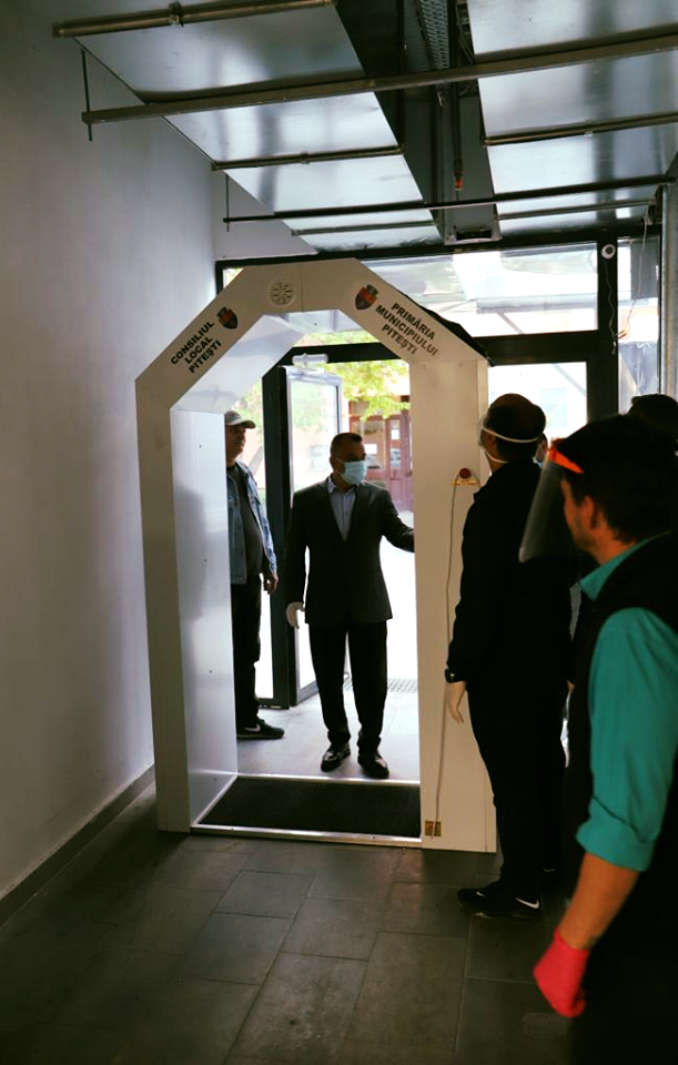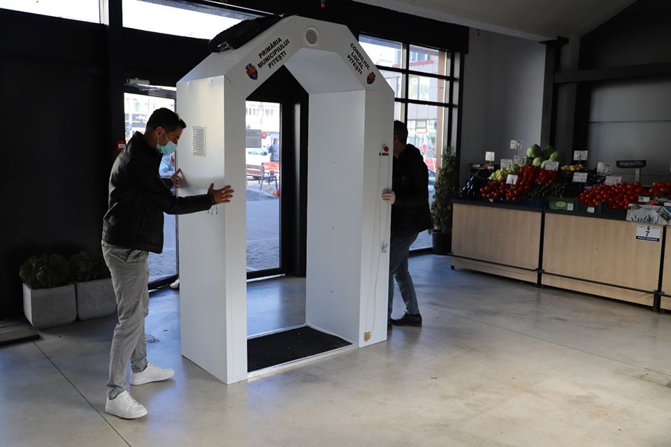 Începând de astăzi de dimineață au fost instalate 5 tuneluri de dezinfectare în zone intens populate de pe raza municipiului, în următoarele locații: Piața Ceair (1 bucată), Piața Găvana (2 bucăți), Piața Trivale (1 bucată), Piața Smârdan (1 bucată). Săptămâna viitoare vor fi montate și alte tuneluri în zonele cu prezență mare de cetățeni. Alte trei tuneluri vor fi donate de către municipalitate Spitalului de Pediatrie Pitești.
