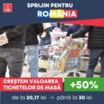 ✅Crește cu 50% valoarea tichetelor de masă – de la 20,17 lei la 30 de lei;