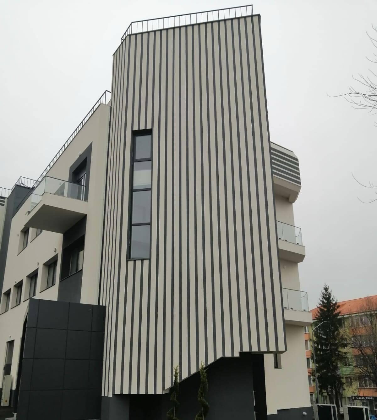 Clădirea, care are regimul de înălțime format din subsol, parter și două etaje, este dotată cu sistem de 16 panouri solare.