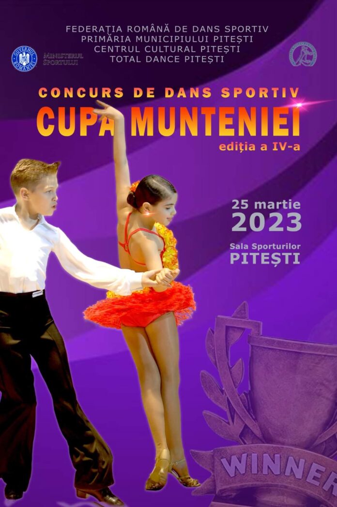 Federația Română de Dans Sportiv, Primăria Municipiului Pitești, Centrul Cultural Pitești și Clubul Total Dance Pitești organizează Concursul de Dans Sportiv “Cupa Munteniei”, ediția a IV-a, sâmbătă, 25 martie, între orele 9.00- 22.00, la Sala Sporturilor din Pitești.