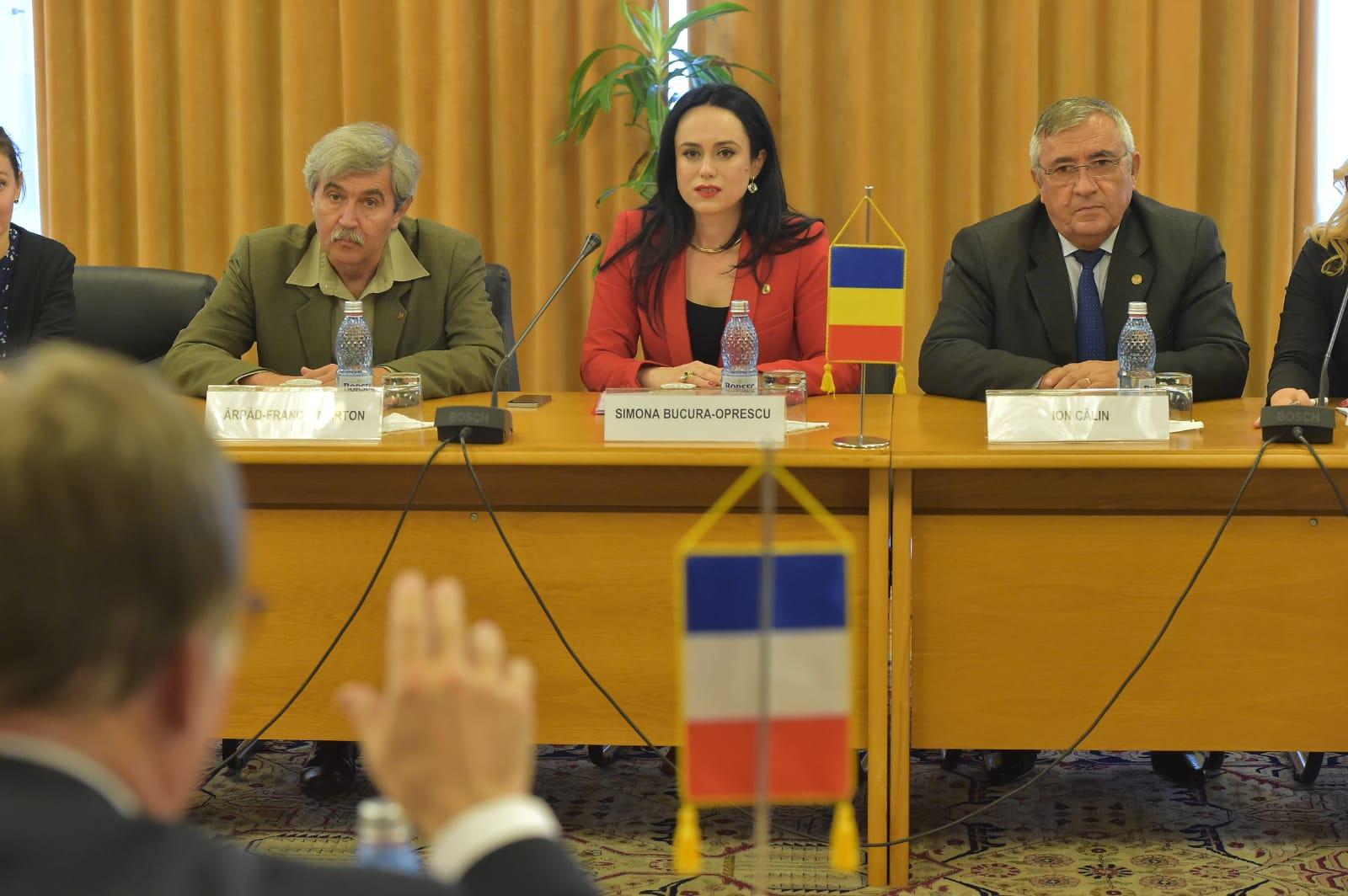 Simona Bucura-Oprescu a salutat prezența oaspeților francezi la Camera Deputaților. “Această vizită are loc într-un moment deosebit al relațiilor dintre cele două țări: aniversarea în acest an a 10 ani de la semnarea Declaraţiei de Parteneriat Strategic, lansarea Sezonului România-Franţa, celebrarea Centenarului Marii Uniri, 25 de ani de francofonie instituționalizată, dar și 50 de ani de investiții franceze în România, care au început la fabrica Dacia. Relațiile dintre România și Franța sunt relații de prietenie statornică și corectă, dar și de prietenie privilegiată”, a precizat deputatul Simona Bucura-Oprescu, care a amintit totodată contribuția acțiunilor de diplomație parlamentară în susținerea acestor legături bilaterale. În acest sens, domnia sa a evocat vizita la București a delegației Grupului parlamentar de prietenie Franța – România din Adunarea Națională Franceză, din luna iunie 2018, care a contribuit la consolidarea dialogului bilateral parlamentar pe teme specifice, cum ar fi viitorul politicilor europene, în contextul deținerii de către România a Președinției Consiliului UE în 2019.