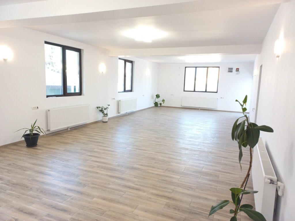 Spatiul este dotat cu ACCESORII PREMIUM si o CAPACITATE TERMOECONOMICA RIDICATA, avand tamplarie Salamander, tripan, 5 camere, fiind o cladire nou construita P+1, izolata termic, spatiu propriu pentru PARCARE in curtea cladirii, cu o intrare direct din strada in spatiul generos pus la dispozitie la PARTERUL CLADIRII. ESTE BINE DE STIUT ca acesta poate fi usor adaptat in functie de afacerea fiecaruia, avand un open space generos, plus doua camere de cate 20 mp fiecare si baia aferenta unitatii. Are un design practic datorita faptului ca intreg spatiul a fost tratat destul de neutru, cu pereti albi si pardoseala ceramica care imita lemnul.