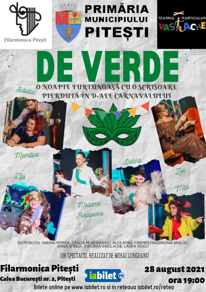 Tot pe 28 august, însă de la ora 19.00, va avea loc și piesa de teatru “De verde” – O noapte furtunoasă cu o scrisoare pierdută în d-ale carnavalului.