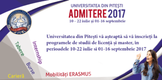 Sesiunea de admitere 2017 la Universitatea din Pitești se desfășoară în perioada 3 – 31 iulie.