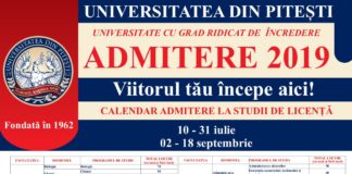 Universitatea din Pitești organizează, în perioada 3-9 septembrie 2018, cea de-a doua sesiune de admitere pentru anul universitar 2018-2019, pentru programele de licență și...
