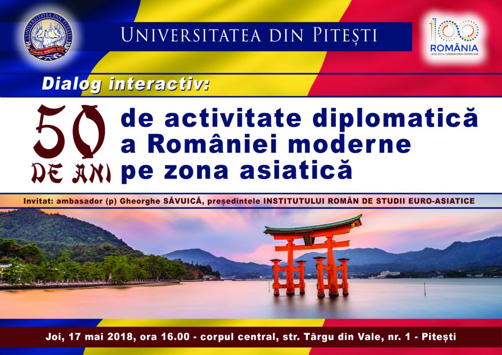 Joi, 17 mai 2018, începând cu ora 16, în Sala Senatului –Rectorat, în cadrul manifestărilor academice care marchează Centenarul Marii Uniri, conferențiază Excelenţa Sa Domnul Ambasador Gheorghe SĂVUICĂ – Preşedintele Institutului Român de Studii Euro – Asiatic. Excelența sa este tatăl vedetei Dana Săvuică.