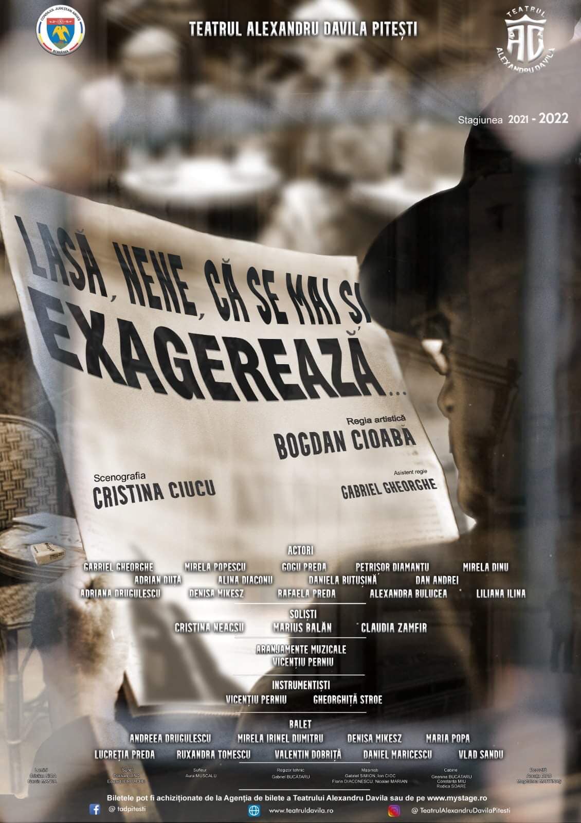 - BILETE: online:https://www.mystage.ro/spectacole/lasa-nene-ca-se-mai-si-exagereaza-3399?af=41 sau de la Agenția teatrului.