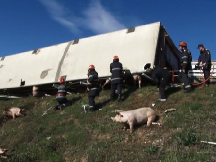 Chiar acum, un autocamion incarcat cu porci a fost rasturnat la iesirea pe A1, in apropiere de Metro. Soferul a fost incarcerat, a fost nevoie de interventie pentru a fi descarcerat. ISU Arges ne-a informat ca la acest moment soferul a fost predat echipajului SMURD, fiind constient. Autocamionul s-a rasturnat in afara carosabilului, nemaifiind niciun alt autoturism implicat.
