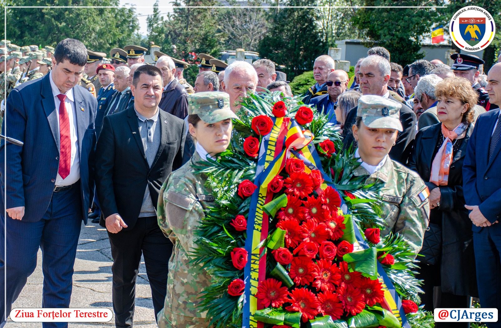 ”Pe 23 aprilie, în fiecare an, marcăm Ziua Forțelor Terestre. Astăzi, este un motiv pentru a aduce o mulțumire în plus soldaților români care își desfășoară activitatea atât pe teritoriul statului nostru, cât și în afara României, în diversele teatre de operațiuni. Este un motiv în plus să le aducem prinosul nostru de recunoștință celor care s-au jertfit pentru ca România să fie un stat independent și unitar. Cinste Armatei române! Cinste soldaților români!”, a transmis Adrian Dumitru Bughiu, vicepreședinte Consiliul Județean Argeș, cu ocazia acestei zile importante, marcate sub semnul Sfântului Mare Mucenic Gheorghe, Purtătorul de Biruinţă, patronul militarilor.
