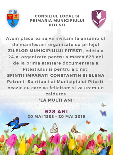 ora 13.00 – Te Deum la Primărie cu ocazia Sfinţilor Împăraţi Constantin şi Elena, patronii spirituali ai Piteştiului;